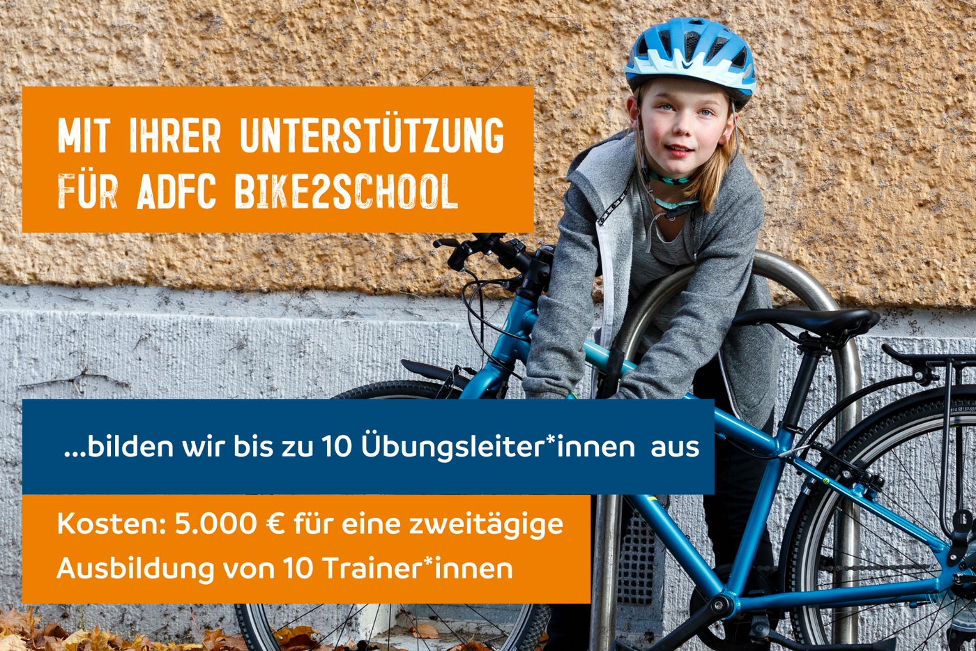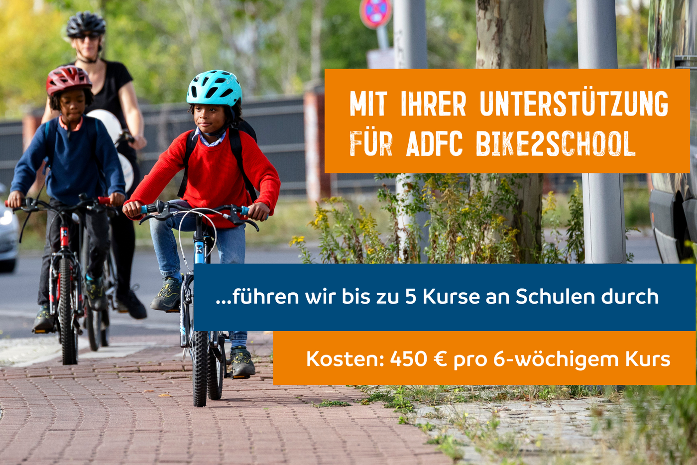 Mit einer Unterstützung in Höhe von 14.500 € können wir alle diese Elemente unseres ADFC Bike2School-Programms umsetzen. Jeder Euro hilft, das Programm zu starten und Kinder mit Spaß aufs Rad zu bringen!