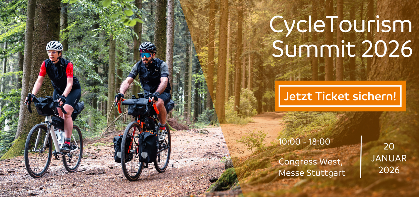 Am 19. und 20. Januar 2026 veranstaltet der ADFC Baden-Württemberg erstmals im Rahmen der CMT Stuttgart den CycleTourismSummit. Der CycleTourismSummit ist eine Plattform für alle, die Radtourismus nachhaltig und zukunftsorientiert weiterentwickeln und gestalten wollen.
